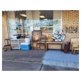 A partial list of items includes: Dining tables & chairs, dressers, chests of drawers, floor lamps, mic stands, china cabinets, book shelves, bar stools, flat TV’s, microwave, purses, rugs, stereo equipment, bar wares, microwave stands, coffee tables, end tables, baskets, hats, Correlle ware, Pyrex, mirrors, books, ice chests, flatware, glasses, dishes, brass décor, jewelry box, rocking chairs, wall art, suitcases, jewelry and lots more! |