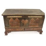Offering 700+(lots) in a wide range of categories including: Large Collection (100+) of Blue Decorated Stoneware Crocks, Jugs and Bottles with Stoneware Advertising Script Jugs (mostly New Jersey), Decorated Redware and Wagner Pottery, Collection of Antique Glass Bottles (Bitters, Soda, Beer, Mineral Water, Medicine, Flasks), Baskets and Woodenware, Cast Iron Match Holders and Porcelain License Plates, Advertising Signs and Powder Tins, Halloween and Christmas Postcards, Christmas Decorations, Tinware and Toleware, Toothpick Holders and Paperweights, Kosta Boda Stemware, Folk Art and Tramp Art, Fine Art and Self-Taught Art (Cullen Yates, Salvadore Dali, Sterling Strauser, Walter Baum, Bernard Ganter, Nicholas Uribe and more), Early Toys and Cast Iron Banks, Collection of Lead Toy Soldiers and Animals, Blackhawk Horse Weathervane and Architectural, Coverlets and Quilts, Vienna Bronzes, Collection of Clocks with Tall Case Clocks, Mantle Clocks, Cast Iron Clocks, Travel Clocks and Oak Time Clocks, 18th C. Dower Chests, Painted Blanket Chests, Queen Anne Hanging Cupboard (1741), Painted Cupboards, Painted Hutch Table, Stretcher Base Table, Corner Cupboards, Painted Benches and Footstools, Bucket Bench, Decorated Boxes, Oak Multi-Drawer Cabinets, 1860 Map of Sussex County, NJ, Exceptional Rosewood Music Box (Butterflies and Dragonflies) and Regina Disc Player, Wooden Propellers, Sterling Silver Tea Service and Flatware, Handmade Oriental Rugs, Orientalia, Arts and Craft Furniture and MORE.