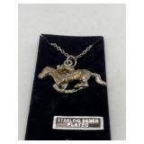 STERLING SILVER PLATED RACING HORSE BROOCH |