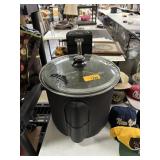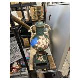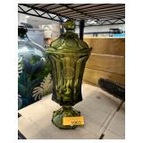 LARGE VTG FOSTORIA GREEN GLASS LIDDED VASE/JAR |