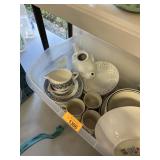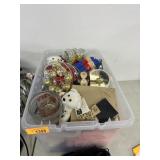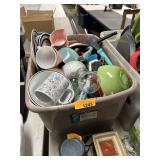 LARGE BIN OF MISC GLASSWARE / ETC |