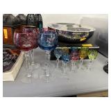 LOT OF COLORFUL UT TO CLEAR CRYSTAL GOBLETS |