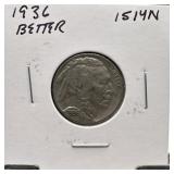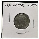 1936 HIGH GRADE BUFFALO NICKEL FULL HORN |