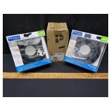 14 5 - Recessed Halo Light Fixtures 3 inch Round - 15 Commercial Electric Slim LED 4inch Spotlight & 2 Soft White Recessed LED Swivel Puck Lights The Color Temperature Select Recessed Lighting Kits are the recessed lights of the future. Not only is each fixture is designed specifically for small spaces where height clearance is limited such as beams or ductwork, you can change the color temperature with a flick of a button. The integrated color changing switch is located on the cable so you can choose between a 2700K, 3000K, 3500K, 4000K or 5000K temperature to best suit your needs. 2700K or 3000K is perfect for relaxing, 3500K or 4000K is the ideal choice for everyday affairs and 5000K is great for task lighting in a basement, hallway or work area. ENERGY STAR certified, and IC rated for direct contact with insulation, these lights won't overheat, do not require a bulky can and will last for years to come - 50 000-hours or approximately 34-years if used for 4 -hours per day to be exact. Wet rated and certified airtight, this 4 in. kit is perfect for your bathroom, drop ceilings, outdoor soffits and all general lighting applications. Brand: Commercial Electric Specifications: