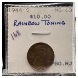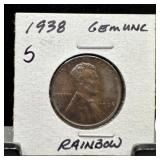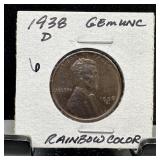 1938-D WHEAT PENNY CENT RAINBOW COLOR |