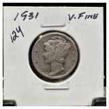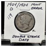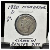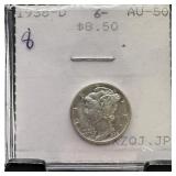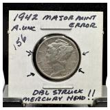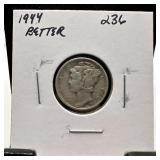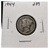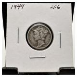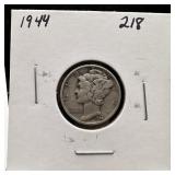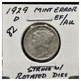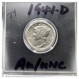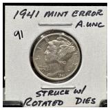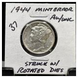 1944 MERCURY SILVER DIME AU ROTATED ERROR |