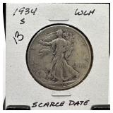 1934-S WALKING LIBERTY SILVER HALF DOLLAR SC DATE |