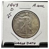 1943-D WALKING LIBERTY SILVER HALF DOLLAR H GRADE |