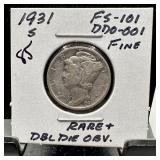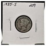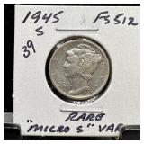 1945-S MERCURY SILVER DIME MICRO S VARIETY |