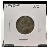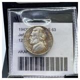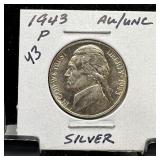 1943-P/P JEFFERSON SILVER WAR NICKEL HIGH GRADE |