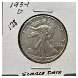 1934 WALKING LIBERTY SILVER HALF DOLLAR SC DATE |