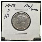 1943-D MERCURY SILVER DIME HIGH GRADE |
