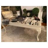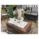 Shabby chic furniture and home decor, planters, topiaries, vintage corbels, picture frames, framed art, Samsung 65 inch Smart TV, costume jewelry, Steiff bear, Ray-Ban glasses, Burberry hat, Coach wallet, vintage books, clocks, home decor, vintage sideboard, painted room divider, painted corner cabinet, vintage mirrors, barware, Keurig, glassware, barstools, women’s clothing, handbags and shoes, art supplies, frames, Paris decor, vintage doors and windows, yard art, vintage desk, vintage sofa, candles, linens, queen bed, vintage dressers, antiques, vintage trunks, patio furniture, Charbroil grill, Intex swimming pool, wood playhouse, tree swing, bird houses, project furniture, yard tools, insecticides, Christmas wreaths, ride on Jeep, toys, artificial plants, vintage end tables, farm sink, BOB stroller