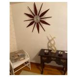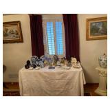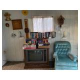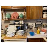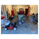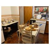 Keller Mid Century Modern China Closet w/Dining Room Table, (3) Leaves & Chairs, Traditional Mahogany Full Bed, Dresser w/Mirror & Night Stands – All Matching, Pair Powder Blue Crushed Velvet Upholstered Chairs & Ottoman, Glass Top Table w/Wrought Iron Legs & (2) Matching Chairs, Queen Brass Bed, Full Size Bed, Pair Night Stands & Dresser w/Mirror, Painted White Drop End Dinette Table w/Two Chairs, (2) Curios, Ridgeway Grandmother Clock, Cuckoo Clock, Vintage United Starburst Wall Clock, Retro Sessions Pop Art Flower Kitchen Wall Clock w/Butterflies On Second Hands, Many Other MCM Style Wall Clocks, Plant Stands, Framed Art Work Including Some Newer Oils, Many Pairs Of Table Lamps, Large Area Rug, Waterford Crystal Including Water Goblets, Small Boudoir Lamp & Many Other Accent Pieces, Large Vintage Lucite Lady Figurine, Collection Of Miniatures Including Franklin Mint Vases, Purses, Shoes, Chairs, etc., Large Variety Of Miniature Clocks, Collector Plates Including (2) Royal Doulton Laurel Burch Cat Theme, Lenox Flower Collection w/Wall Hanging Display Case, Brassware, Tea Pot Collection, Wedgwood Jasperware, Collection Of Oriental Theme Decorative Items Including Budda, Plates, Ginger Jars, etc., Snowbabies Collection, Knick Knacks & Figurines, Crystal Stemware, Mid Century Modern Burlap Insulated Ice Bucket, Many Pieces & Assorted Colors Of Newer Fiesta China Including Plates, Tea Pots, Candlesticks, etc., Newer Coffee Grinder, Cranberry Visions Cookware, Vintage Wood Rolling Pin, (2) Sets Flatware In Wood Cases – (1) Community Stainless & (1) Rogers Silver Plate, Corelle Dinnerware w/Serving Pieces, Small Appliances, Cast Iron Skillet, Ginsu Steak Knife Set w/Block, Corning, Pyrex, Costume Jewelry & Watches, Ladies Clothing (M) & Shoes (7) – Champion & Nike Tennis Shoes, Ladies Oriental Silk Pajama Set w/Slippers – MIB, Vintage Wedding Dress w/Veil, Vintage Child’s Silk Kimono w/Sash, Girl’s White Rabbit Fur Muff, Mittens & Hat Set, Vintage Dolls & Clothing Including Miss Revlon & Shirley Temple, Vintage Doll Clothing & Accessories – Sold As Lot, Vintage (3) Piece Pink Tin Doll Furniture Set, Linens, Sewing Machine In Cabinet, 200+ Hard Back Books, Electronics, Men’s Ten Speed Bike, Vintage Wood Croquet Set, Metal Shelving, (3) Double Door Metal Cabinets, Craftsman Free Standing Tool Chest, Power & Hand Tools, Hardware, Aluminum Step Ladder, Vintage Folding Chairs, Toro Lawn Mower, Garden Statuary, Newer Stainless Microwave