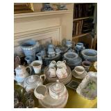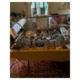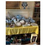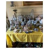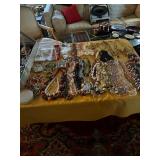 Home is loaded with costume jewelry, vintage bags, belts, clothes & shoes, Royal Copenhagen, Lladros, sterling, 2 sets of Wedgewood china, records, Lionel trains, retro bar stools, MCM end tables, pair of chairs & daybed, dining room table, chairs and matching china closet, marble top server, white sectional, beautiful rugs, funk starburst wall art, ornate gilded mirrors, marble top round coffee table, bedroom sets, grandfather clock, Corelle, small appliances & more kitware, wrought iron and glass dinette, sofa, side tables, chairs, jewelry cabinet, pair of lion lamps, art & more! |