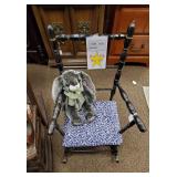 We still have many project boxes and new fabrics and notions that are in from the untimely passing of Ann Leet (Needle and Thread in Washington, IA). Many Mid century items!!!! A 1950’s Formica and chrome slim desk, a small Formica rectangle table, a 1950’s wood and mirror shadow box frame. 2 fabulous wood carved plant hangers that have so many other uses. A Brown wicker trunk, a white wicker trunk, 4 vintage folding chairs, a waterfall desk and a bamboo chair.