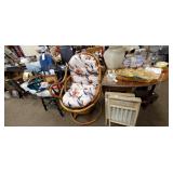 Furniture: Several Glider rockers, a variety of glass and metal touch lamps, a zebra corner shelf, a wide variety of coffee tables and end tables with 3 new ones in