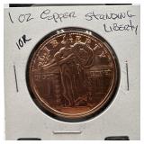 1oz COPPER BULLION ROUND STANDING LIBERTY |