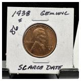 1938-D WHEAT PENNY CENT RAINBOW TONED |