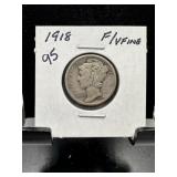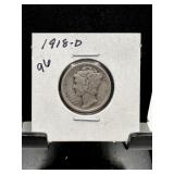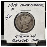 1918-D MERCURY SILVER DIME STRUCK W ROTATED DIES |