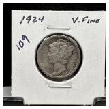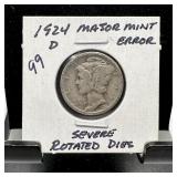 1924-S MERCURY SILVER DIME ROTATED DIES |