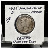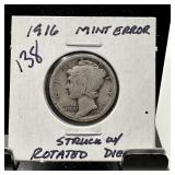 1916 MERCURY SILVER DIME STRUCK W ROTATED DIES |
