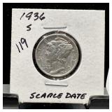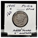 1945-S MERCURY SILVER DIME RARE MICRO S |
