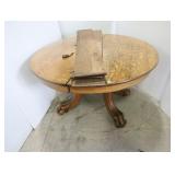 Oak Extension Dining Table, Three Extension Leaves, Note Damage To One Leg