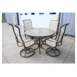 Glass Top Patio Table and Four Swivel Chairs