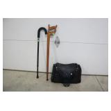 Duffel Bag, Handsaw Walking Stick, and Cane
