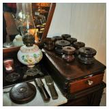Please see all photos for this 1-day only estate sale! Tons of antique wood furniture Collectibles Costume Jewelry Sterling Silver & Silverplate Flow Blue China Swarovski Crystal Marilyn Monroe Lithographs Occupied Japan Figurines Boy Scout Memorabilia Books Kitchen Brand new generator more pictures will be added. |