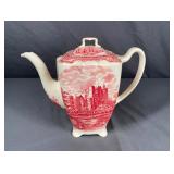 Vintage Strafordshire "English Scenic" Pink and White Tea Pot