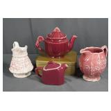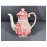 Pink and White Tea/Coffee Pot Made in England 9" Tall x 9" Wide x4" Deep