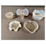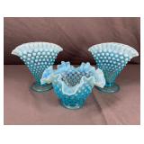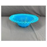 Fenton Blue Hobnail Ruffled Edge Bowl
