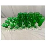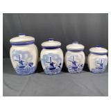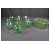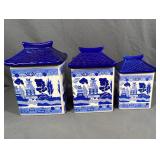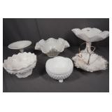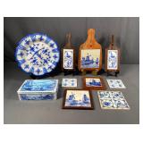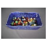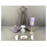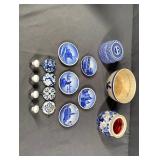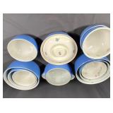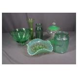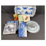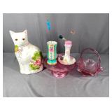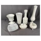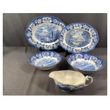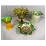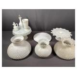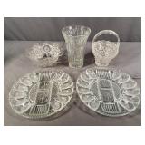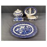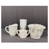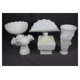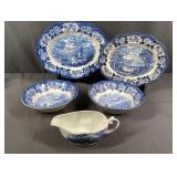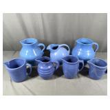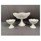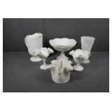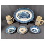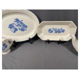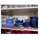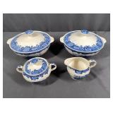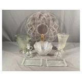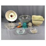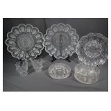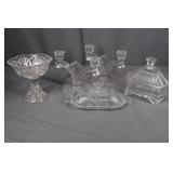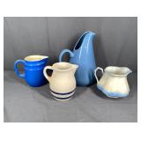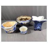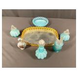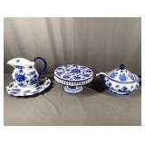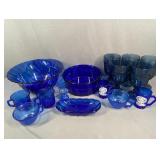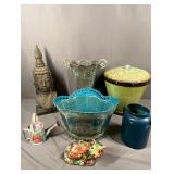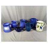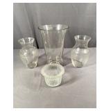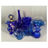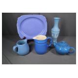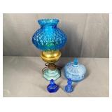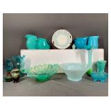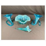 (4) Vintage Blue Glassware, (3) Vases, (1) Candy Dish