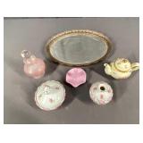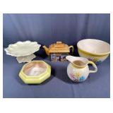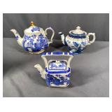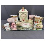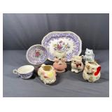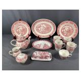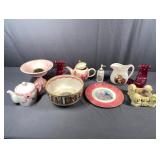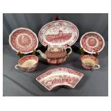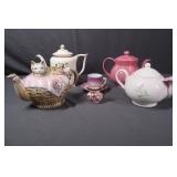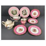 Vintage Staffordshire "English Scenic" Pink and White Tea Pot 6" Tall x 9" Wide x 6" Deep