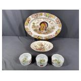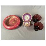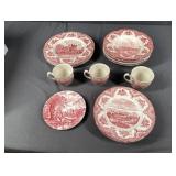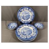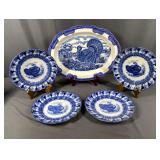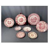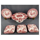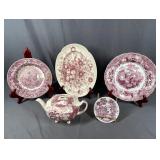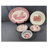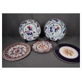(5) Pink and White Collectible Plates, (2)Spode, Straffordshire,(2) Homer Laughlin