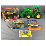 Cast Iron Tractor and Tow Truck. International Farmall 1456, Ertl John Deere, and BF Goodwrench Wrecker