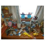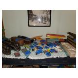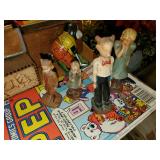 RARE HARD TO FIND GAMES, TOYS, ELECTION PINS, TAXIDERMY, 20 GALLON MONMOUTH CROCK, BUBBLE BACK CHAIRS, BUTTERFLY TABLES, HOOSIER CABINET W/ ORG BAKING DRAWER AND RACKS, HANDMADE QUILTS THROUGH THE YEARS 1930-1970, BUBBLE GLASS SET (GREAT CONDITION) ENESCO HOLIDAY DECOR, GETTYSBURG GAME, RARE TANK TRAP GAME ORG BOX,WACKY ADS, PARAMOUNT 1940s MOVIE PROMO CARDS, 1940s MONSTER MODELS