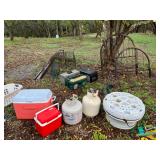 3 buildings and 4 metal containers and outdoors. Antique items, Vintage items, lots of tiles, paintings, handtools, yard, tools, quilts, comforters, vintage, and antique capodimonte and Limoges, and others, yard art, Mexican decor, African decor, lots of kitchen ware, Mexican rugs & blankets, tons of planters & holders, Christmas dishes, golfing, albums, CDs, tree saws, bricks, vintage quilts, modern art, vintage Hummel plates, vintage Polaroids, vintage pottery, tons of nuts & bolts & screws, chain, furniture and on, and on!! (didn’t have room to include pictures of any of the furniture, and lots of other items)