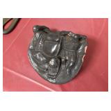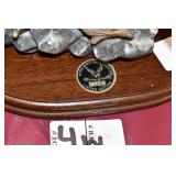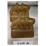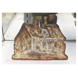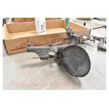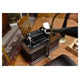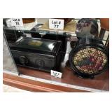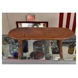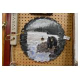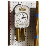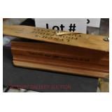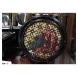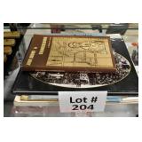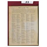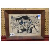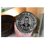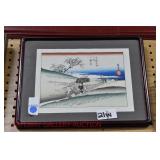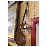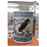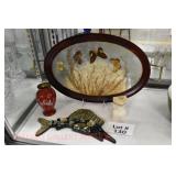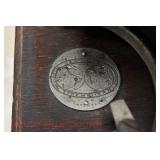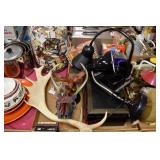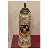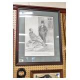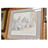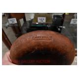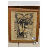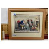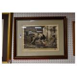Wall Catalog 1w Portable Chess Set: wood folding board, chess pieces inside, carved stone 2w German Heidelberg Container: 1863 Fr. Reisig Heidelberg, stoneware, double handled, w/lid, hole for spout 3w Esso/Exxon Tiger Drink Tray: (6) mugs, round serving tray 4w Porcelain Eagle: designed by Maria Goretti, The Bird Sanctuary, #4714/7500, on wood base, COA 5w Bedroom Set: wash bowl, pitcher, soap dish, toothbrush holder 6w Cast Iron Skillet: No. 8, Favorite Cookware 7w Flower Vase: blue glazed, cherry blossoms, approx. 15" tall 8w Railroad Lantern: clear globe, PS in Keystone embossed on globe, PS on frame 9w Stoneware Jug: Ripley Bromo Lithia Spring Water, has cork 10w Railroad Lantern: L & N, red painted, no globe 11w Brass Giraffe Statue: 28.5" tall 12w Framed Print: signed De Etta, '96, French, two judges/attorneys 13w African Wall Carving: mask, beaded & painted, on back Made in Ghana 14w Lithographic Print: still life, Joseph Hoover & Sons, Philadelphia & NY, framed & matted 15w Watercolor: signed Semple, matted & framed, lake scene 16w Watercolor: French, signed De Etta '86, after Daumier, court scene, framed & matted 17w African Wall Carving: mask 18w Tapestry Artwork: Oriental New Year, 20x20, machine pieced kimono, vintage silk pajamas circa 1940, quilted pattern on kimono sleeves, coin attached is to ward off evil, done by Annette Ehley, w/ orig. info 19w Lithographic Print: Fox hunting, London Published, T. McQueen, matted & framed 20w Bird Print: Owl & Hawks, double matted & framed 21w (3) Hiroshige Ando Wood Block Prints: "Geese Alighting at Katata"; "Plum Garden, Kameido"; "Rural Scenes at Yase" all framed 22w Beaded Wall Hanging: conch shells, beaded lizard & geometric shapes, 40.5" long 23w Travel Souvenir Mask: metal, painted, face w/rainbow wings 24w Travel Souvenir Mask: metal, painted, face w/bird headdress 25w German Tea Set: teapot, creamer, sugar, (6) cup & saucers, in orig. box 26w Western Germany GERZ Beer Stein: stag head front, pewter lid w/ram, 18" tall 27w 2-Gallon Crock: blue 2 in keystone, brown band, no lid 28w Miniature Keg on Stand: German, w/hammer Bauere Aying 29w Miniature Chest of Drawers: (4) drawers, has some roughness to finish 30w Carved Cane: African, elephant & (2) leopards 31w Pencil Drawing: De Etta '86, after Daumier, French saying, w/attorney & client, double matted & framed 32w Washington's Reception on Bridge at Trenton: published 33 Spruce St NY, framed 33w Rebel Invasion of Chambersburg Newspaper Illustration: July 11, 1863, Frank Leslie's Illustrated Newspaper, framed 34w Burning of Chambersburg Newspaper Illustration: Nov 1, 1862, framed & matted 35w Enamel Metal Advertising Sign: Morse Cutting Tools, F.F. Despard Co., NY, does have some minor scratches, rust & paint chipping along edge of sign 36w Original Watercolor: Anne Finucane, framed & matted 37w Mad Max Movie Poster: Beyond Thunderdome, 1985 38w African Wall Carving: painted eyes, beaded necklace 39w Junghans Kitchen Clock: delft styled 40w Currier Print: Washington's Reception by the Ladies, Passing the bridge at Trenton, some water staining, framed 41w Enamel Kitchen Clock: Garante, Schwebe-anker 42w Junghans Kitchen Clock: wood cased, key wind 43w Kitchen Clock: Kieninger, key wind, w/key 44w Thomas Kincade Print: Home Town Chapel, 1999, w/CoA, matted 45w (2) Bird Lithographic Prints: framed & matted 46w Framed Lithographic Print: Attaque de Mameluck, has some foxing, framed & matted 47w Lawyer's Advice: signed Thomas Tegg, framed & matted 48w Cuckoo Clock: small size, double birds, pinecone weights, pendulum, marked Germany, works 49w Bird Print: sparrows & warblers, framed & matted 50w Framed Lithographic Print: Charge de Mameluck, framed & matted 51w Framed Print: Napoleon 52w Davis Gray Framed Print: Plough Tavern & Gates House, framed & matted 53w Framed Print: Ackerman, meadow scene, matted 54w Copper Utensils: ladle, skimmer w/hand forged handles 55w Hand Forged Utensils: flesh forks 56w Tribal Shield: decorative, approx. 54" long x 12.5" wide, painted 57w Central/South American Carved Mask: snake & panther 58w Tribal Shield: wood, 28" long, oblong 59w Painted Saw Blade: black bear 60w Bugs Bunny Light: plastic 61w Tweety Bird Light: plastic 62w John Wayne Collectibles: Bradford Exchange, Life & Legacy commemorative print, 2011, No. A0705/7500, framed & matted 63w Tavern Sign: Hours Monday - Saturday 11am 2am, Sunday 1pm-2am, wood, painted, 28" wide x 41.5" long 64w Deer Mount: 8-point 65w Deer Mount: 8-point 66w Meger Artist Proof Print: black bears, 133/150, signed, numbered, matted & framed 67w Spirit of Altoona PRR Print: framed & matted 68w Deer Mount: shoulder mount, 4 point 69w Kitchen Clock: porcelain face & surround, brass weights & pendulum 70w Vienna Frame Wall Clock: glass door, enamel face 71w Limited Edition Artist Proof Print: Dan Christ, Commanding Attention, 68/120, triple matted w/painted turkey feather, signed 72w George Losch Print: covered bridge, 150/600, double matted & framed 73w Wall Clock: Chalon & Saine, wood case, decorative columns, gallery top, pendulum 74w Wall Clock: wood cased, brass face, brass details, beveled glass, brass pendulum 75w Wall Clock: black walnut, metal face, beveled leaded glass, pendulum 76w Wall Clock: glass front & sides, column details, top gallery, enamel face, brass & enamel pendulum 77w Wall Clock: wood cased, metal face, some destressing to paint on face, pendulum 78w Wall Clock: metal face, beveled glass, carved & applied details 79w Electric Wall Clock: Wisconsin Clock Co. 80w Folk Art Wall Clock: Bavarian house, well in front, bottom slanted front needs reattached 81w Hanging Lamp: frosted blue deco shade 82w Wall Clock: wood cased, beveled leaded glass front, metal face & pendulum 83w Wall Clock: key hole glass front, carved decorative columns, base finials, has gallery w/lions face 84w South American Tribal Basket: paint decorated, woven 85w Foot Stool: mortised 86w Enamel Bucket: some rust & spalling, swi