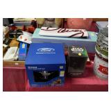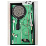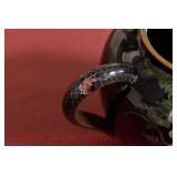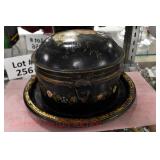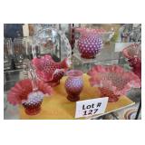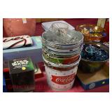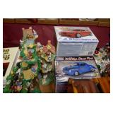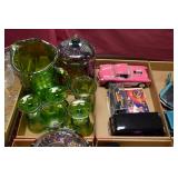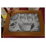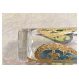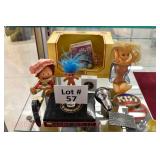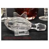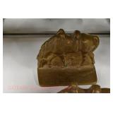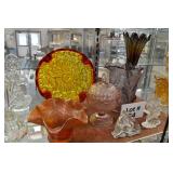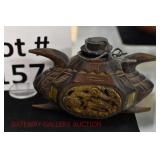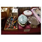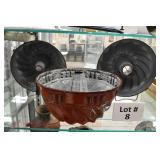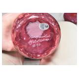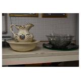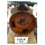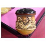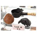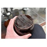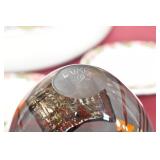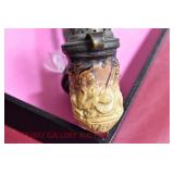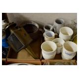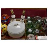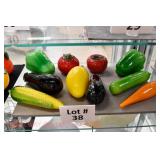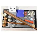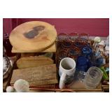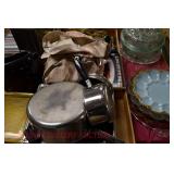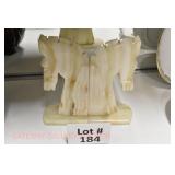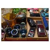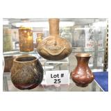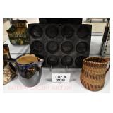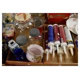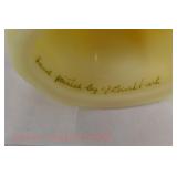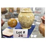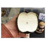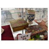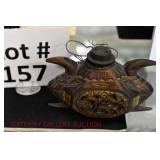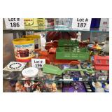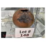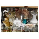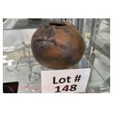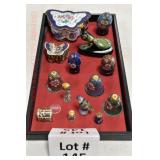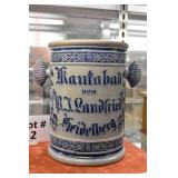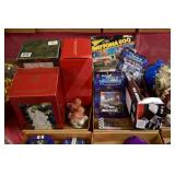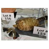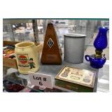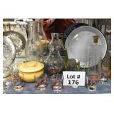 Showcase Catalog 1 Vintage Kitchen Enamelware: cream pail; handled strainer/colander; grinder; wall mount onion holder (all white enamel w/blue details) 2 Blue Decorated Stoneware Wine Crock: stamped Steinzeogfabris, highly decorated with crow on one side and Derwahre Jacob, writing on reverse side 3 (3) German Coffee Mills: wood, one drawer, top crank handles, each with labels 4 Nest of (4) Bowls: graduated set of bowls, with blue geometric design, large bowl 9" dia, medium bowl 7.5" diam, small bowl 6.25" dia, mini bowl 5" dia 5 (5) Stoneware Crock Wine Pitchers: (4) Germany blue decorated with grapes and saying roughly translates to "drink your wine like your father is made of stone” - (2) .5 liter, (2) 1 liter; (1) pitcher translates to "the wine tastes fine from a stone jug" 6 Advertising, Stein, Mini. Lamp, Graniteware etc.: Egyptian Turkish cigarette tin; Fanal stein; cobalt blue mini finger lamp & chimney; graniteware flask canister; metronome 7 Vintage Matchbox & Hot Wheels: (29) matchbox - assorted, some superfast, some Lesney, various condition; (7) Hot Wheels - assorted, various condition 8 (3) Graniteware Enamel Molds: turban style 9 Varga Karoly Character Pitcher: glazed redware pitcher of soldier with mustache and snake on chest, stamped on bottom 10 (2) Signed Art Glass Paperweights: Aro Schulze under water abstract sea scape, signed, dated & # 414; Nourot amoeba style, signed, dated 11 Cloisonne Covered Dish: 7” diameter, divided interior, lid has foo dog finial. Chip on lid 12 Art Glass Vase: conical shaped, 6.5" tall, signed Luke 93 13 (3) Natural Wood Jewelry / Trinket Boxes: each different, unsigned 14 (2) Cloisonne Goblets: 5.25" tall x 4.25" dia, depicts Asian musicians 15 Travel Souvenirs: Carved turtle shell with Buddha figures (shell chipped on side); cast met pot with bone handle, handled etched; carved gourd with village scenes (appears to be south or central American) 16 Art Glass Vase: 5.75" tall, not signed 17 (2) Antique Pipes: carved pipe man with goblet; stoneware pottery pipe 1761 bard minstrel with brass top, has stem 18 Jewelry: .925 sterling earrings; keltatuwe mapuche pin Santiago Chile; beaded necklaces 19 (2) pcs. Cloisonne: 4.25" tall x 7" dia. Bowl with horse; double handled vase (1 handle is chipped) 20 Metal Christmas Tree Stand: scroll work 21 Vintage Christmas Tree Stand: folk art fence, wood base, painted green with white picket fence 22 (2) Vintage Christmas Tree Stands: cast metal - (1) tri-foot style; (1) round dome style 23 Desktop Letter File: Wood shelf with (4) graduated shelves for letters, documents, stamps, etc. 24 Asian China: duck teapot (hairline crack in base); vase; plate (chipped); charger 25 (2) pcs. Pottery & Copper Vase: floral etched pottery vase; hammered copper bud vase; pre-Columbian style figural pot (appears to be a modern reproduction) 26 Nummulite Limestone Vase & Sphere: covered urn & sphere from Karchi Pakistan with paperwork 27 Lucy Dean Reed Pottery & Other: carved pot signed by Cherokee Lucy Dean Reed; carved pot, unsigned 28 Travel Souvenirs: decorative mask for Indonesia; carved wood tribal mask; carved bamboo cylinder; basket 29 Cranberry Glass: coin dot sugar shaker; opalescent coin dot vase w/ruffled edge 6.25" 30 La Mailloche Original: perfume bottle (perfume stem is broken) 31 Birds of New York Folio Book: plates by Isaac Sprague, 1916 edition plates 1 - 106 (missing pages 47, 52, 57, 64, 74, 76, 85, 86, 101) 32 (2) Signed Art Glass Paperweights: Joe Rice blue floral; Gentile Glass Star City WV swirl 33 Wingspan Scope: 12x50 w/case 34 Assorted Lot of Pottery, etc.: Mexico pottery bud vase; art potty multi glaze ewer pitcher; multi-glaze redware pitcher; Royal Doulton character pitcher The Lawyer; skater's lamp (globe is cracked) 35 (9) pcs. Art Glass Vegetables: (2) tomatoes; (2) eggplant; red pepper; green pepper; jalapeno pepper; orange carrot; yellow carrot 36 (9) pcs. Art Glass Fruit: (2) bananas; grapes; (2) apples; orange; (2) pears; grapefruit 37 (9) pcs. Art Glass Fruit: banana; lemon; grapes; (2) oranges; (2) red apples; (1) green apple; (1) orange pear 38 (10) pcs. Art Glass Vegetables: corn; (2) eggplant; (2) green peppers; (2) tomatoes; yellow pepper; cucumber; carrot 39 (3) Pyrex Bowls: large mixing bowl swirl pattern; (2) medium mixing bowls Americana pattern 40 Vintage Esso Exxon Tiger Pitcher Set: pitcher and matching (7) tumblers - put a tiger in your tank - in different languages 41 (2) Pyrex Bowls: medium and small mixing bowls, sandalwood pattern 42 (9) Art Glass Fish: tropical fish 43 Pyrex Casserole w/Cradle: verde green casserole with lid and double handled cradle 44 Watt Salad Set: poinsettia pattern - master bowl & (4) double handled individual bowls 45 Vintage Tumbler Set: set of (8) golden wheat tumblers in metal carrier 46 Nest of Pyrex Bowls: graduated set of bowls, americana pattern 47 Planters Peanut Jar: cobalt blue with peanut lid (reproduction) 48 (2) McCoy Cookie Jars: mammy, (1) has paint loss on face, hands and belt 49 Imperial, McKee & Other Glass: Imperial creamer, vase & cracker jar; McKee jadeite plate; amethyst violin bottle with wall hanger 50 (5) Bottles: Dairylea cottage cheese bottle; Lightning bottle w/glass top; Horlicks malted milk; Kruger's amber dairy bottle; C. W. Trone dairy quart bottle 51 (7) pcs. George & Martha China: (2) cup & saucer sets marked Japan; Homer Laughlin bowl; urn vase marked Abingdon; double handled vase marked USA; (2) figurines marked KPM 52 Hand Painted Vase: green glass with hand painted flowers and gold flash, 11" 53 (3) pcs. Marigold Imperial Glass Carnival: creamer, sugar, butterdish - rose pattern 54 (8) pcs. Glass: Princess House paperweights (deer, clown, rocking horse); marigold carnival open rose bowl; pink daisy button covered candy; purple milk thistle pitcher; amethyst carnival vase; amberina ashtray 55 (6) Clear Glass Perfumes: pressed glass, assorted styles, stoppers look good 56 Carnival Berry Set: marigold - 
