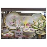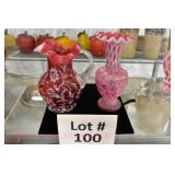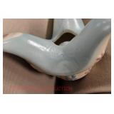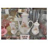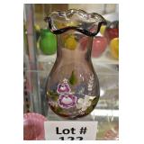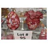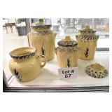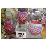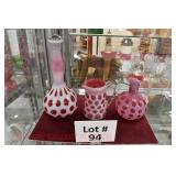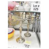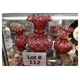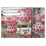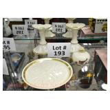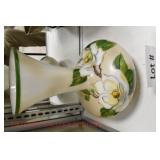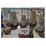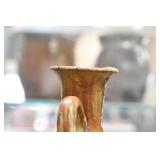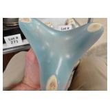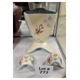 272 Hull Pottery: vase and matching candle holders butterfly pattern