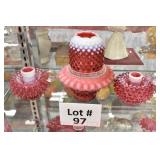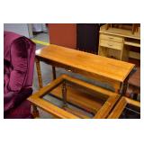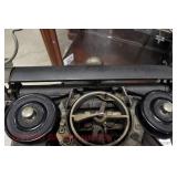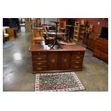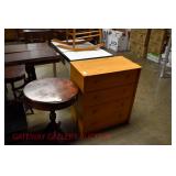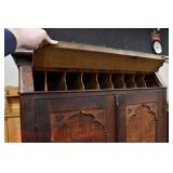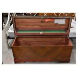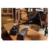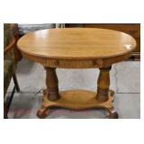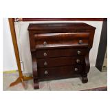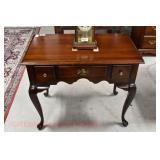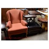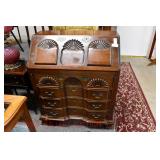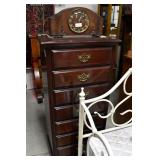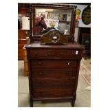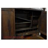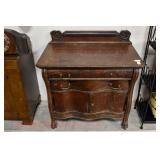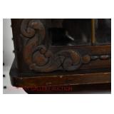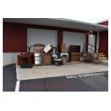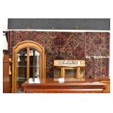 Furniture Catalog 1f Figural Piano Lamp: brass Greek figures, floral painted shade, chimney 2f Waterbury Clock: 8-day, reverse painted w/butterflies, enamel painted face, pendulum, key 3f Wall Stand Display Case: lighted, curved glass sides, double doors, glass top, glass shelf 4f Stoneware Crockery Ginger Jar: koi decoration, approx. 20.5" tall w/lid 5f Fenton Cranberry Opalescent Parlor Lamp: square white marble base, center bowl & matching shade w/chimney 6f Hall Table: claw & ball foot, 2-drawers, dovetailed, gallery back 7f Fenton Cranberry Opalescent Parlor Lamp: matching base & shade, w/chimney 8f End Stand: 1-drawer, brass rollers, modern 9f Slant Front Secretary Desk: cubbies on inside, shell details on front, 4-drawer 10f MCM Sculptural Table Lamp: 3-shades 11f Plant Stand: open shelf, beaded details on legs 12f Victorian Chair: carved rose on back & legs, upholstered, shows wear to fabric 13f Side-By-Side Chifforobe: oak, teardrop mirror, slant drop front, 3 drawers on one side, curved glass on other side 14f Runner: approx. 11'9" 15f Clothes Tree: missing one of the brass hooks 16f Stained Glass Window: measures 53.25" long x 29" wide, a couple minor cracks in slag around the boarder (not loose), orig. paint, wood framed 17f Empire Chest of Drawers: 4-drawer graduated chest, chipping on veneer 18f Mantel Clock: Junghans, needs oiled 19f 2-Pcs. Buffet Server: top has arched beveled glass doors, feather column details, open gallery at center, base is 1 drawer over 2 doors 20f Stained Glass Church Window: arched, approx. 11ft tall at arch, base 3ft wide, missing one of the glass panels at base, original arched wood frame & paint, another panel that is broken 21f Edison Home Phonograph: serial #307605, has 2 horns including the bell horn, has (13) wax cylinders, has top case, there is some paint loss and rust on the large horn 22f Cochran Table & Chairs: ext. table, 2 boards, 6 chairs, matches 23f 23f Cochran Hutch Cupboard: 2 pcs., triple paned doors, open shelf, 2 drawers over 2 side doors & 3 center drawers, matches 22f 24f Lesher Grandfather Clock: sun & mood dial, string inlay, cherry 25f Oriental Rug: approx. 12'4" x 9' 26f Mantel Clock: Hermle, deco style, needs oiled, wound tight 27f Broyhill Chest of Drawers: 4-drawer, shield detail 28f Game Table: Duncan Phyfe style, brass claw feet, hinges are loose 29f Marble Top Wash Stand: cottage style, pink marble w/backsplash, 2 drawers over 2 doors 30f Mantel Clock: brass & glass details, 4 glass panels, veneer on top is cracked, wood is cracked, has pendulum & key, mercury weights 31f Vanity Desk: Queen Anne style, 1 drawer 32f Duncan Phyfe Drop Leaf Table: metal claw feet, 1 drawer 33f Post Master's Desk: early, circa 1880, w/panel doors, file inserts, fancy fret work, 2 pcs. 34f Crawford Furniture High Chest: 6 drawers, some blue paint markings on top 35f Book Keeper's Desk: oak, open shelf, drop down front w/pigeon holes, 3 side drawers on left side, 1 door on right side 36f Display Cupboard: lighted, 4 glass shelves, beveled glass paned door, glass sides 37f Bowfront Cabinet: oak, 3 wood shelves, mirrored backsplash 38f Kahan Oriental Rug: 14' x 9'2" 39f Set of (3) Oriental Rugs: large - 9'x12', (2) small - 26" x 4', Karastan Kirman 40f Clayton Marcus Living Room Chair: geometric pattern upholstery 41f Drum Table: claw & ball metal feet, 1 drawer, has metal lion head drawer pull 42f Clayton Marcus Living Room Chair: geometric pattern upholstery 43f Lane Cedar Chest: waterfall style, tilt out tray 44f Karastan Oriental Rug: Kirman 2'2" x 4' 45f Day Bed: white wrought iron frame, Serta mattress & box spring 46f Mantel Clock: w/key & pendulum 47f Crawford Furniture Lingerie Chest: 7 drawers 48f Mantel Clock: Junghans, deco style, pendulum, key 49f Durham Double Dresser: w/mirror 50f Empire Chest of Drawers: graduated, 4-drawer, scroll at front 51f Display Cupboard: lighted, 3 glass shelves, mirrored back, glass paneled front door, glass sides 52f Book Case: glass door, glass sides, 3 wooden shelves, scroll detail on front 53f Library Table: oak, oval top, 1 drawer 54f Victorian Side Chair: carved rose at top 55f Mantel Clock: key, pendulum 56f Dresser w/Mirror: tilt mirror, 2 drawers over 4, some roughness to finish at top 57f Mantel Clock: tombstone style, reverse painted eagle on front, pendulum & key 58f Chest of Drawers: 2 over 4, suite includes 58f, 59f, 61f 59f Double Dresser w/Mirror: suite includes 58f, 59f, 61f 60f Pair of Table Lamps: brass, pineapples 61f Double Dresser w/Mirror: suite includes 58f, 59f, 61f 62f Dresser w/Mirror: oak, tilt mirror w/beading & shield details, 2 drawer over 2 drawer, some staining to top & chips to veneer on 1 drawer 63f Display Cupboard: lighted, sliding front glass door, glass sides, mirrored back, 7 glass shelves, approx. 6'8" tall x 3'4" wide x 15" deep 64f Cuckoo Clock: mantel style, soldier comes out of door (missing what he was holding), a lot of gingerbreading 65f Dresser w/Mirror: large, claw feet, tilt mirror, a lot of carved details (flowers, etc.), 2-drawer over 2-drawer 66f Set of (3) Oriental Rugs: large - 6'6" x 9'; small- 3'x5', Karastan Kirman 67f Oriental Rug: hand knotted, 4'5" x 6'9" 68f Oriental Rug: 2'4" x 5' 69f Victorian Spring Rocker: turned spool details, Eastlake style, needle point back & seat 70f Victorian Spring Rocker: turned spool details, Eastlake style, needle point back & seat 71f Oriental Rug: 9'6" x 72" 72f Open Book Shelf: 3 shelf, mahogany 73f Wash Stand: oak, 1 drawer over 2 door 74f Dry Sink: some roughness to finish 75f Mantel Clock: key, pendulum 76f Victorian Wash Stand: claw & ball feet, decorative backsplash, some damage to veneer, missing 1 drawer pull 77f Set of (3) Baskets: hand made, signed CH 2010, blue accent weaving 78f Baker's Rack: black wrought iron, folding 79f Mantel Clock: key, pendulum 80f Victorian Desk: claw foot, 1 drawer over 2 side drawers, some finish loss 81f Sewing Stand: oak, drop leaf side, 3 drawers 82f Mantel Clock