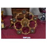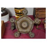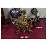 112w Deco Style Ceiling Light: candelabra style, 5-bulb, minor painting, lots of rust, cast metal