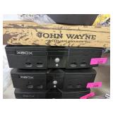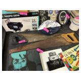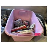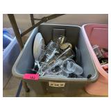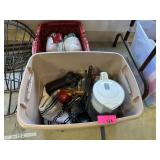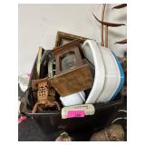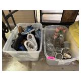 2 BINS+ OF MISC HOME DECOR GLASSWARE SHOES ETC |