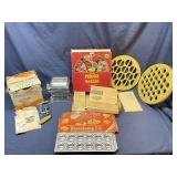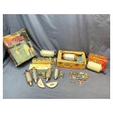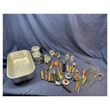 Another Online Auction with something for everyone! Items include primitive furniture, Eastlake and antique furniture, vintage granite ware top table, vintage lamps and statues, antique hand forged andirons and wood rack, vintage arched wall candle holder, Audubon prints, railroad lanterns, Shapleigh Hardware lantern, oil lamps and shades, hand forged copper and metal pots, vintage men's and women's hats, shoes and clothing, quilts, linens, sewing notions, antique smoker stand, candelabra, Famous Oklahoma Indians frosted glass tea set with tray, stoneware crocks and bowls, baskets, silverplate and sterling, jewelry, Victorian mercury glass candles, EAPG, art glass, Griswold and cast iron, stamp collection, empty firearm boxes, Vintage Our Lady of Rosary religious print, Cashmere Christmas tree, Shiny Brite ornaments, vintage ornaments and lights, kitchen appliances and bakeware, ss restaurant pans, Corning Ware, Pyrex, Fire King, cameras, milk cans and crates, Nintendo Gameboy system, framed artwork, lawn and garden, patio furniture, Baroque concrete fountain top, camping gear, 1945 military crate, metal wheel balancing sign, farm gates, barn doors, antique hand tools including hay cradle, tools, chain saws, glass insulators, horse collar and hames, horse brasses, vintage animal bones for schools, and many more items! |