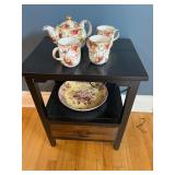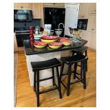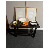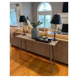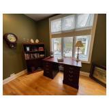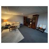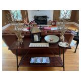 Sofa table, decorative ladder, ladder shelving units leather sofa, leather ottoman, Christmas Decor, pottery barn rug, side table, Pottery Barn sectional tufted ottoman , Pottery Barn black table, costume jewelry, HP printer, Lisa audit artwork, TV stand, tobisha TV, bookshelf, executive desk, Antique china cabinet, pottery barn upholstered chair, Howard Miller wall clock, run to the Earth, print, potter barn table and six chairs, painted cabinet,Drexel buffet, pottery barn distressed table, upholstered chair, barstools, side cabinet, pottery barn runner, ninja mixer, LG washer as is , LG dryer, books, 31 day wall clock, royal Worcester china set,