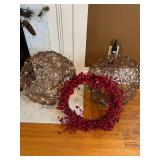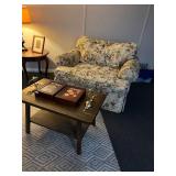 Pottery barn table and four chairs, large pre-lit Christmas tree, NordicTrack power elliptical commercial 1300, entertainment center three piece, floral oversize chair, Christmas decor, Halloween decor, Panasonic TV, VHS, side table, board games, Legos, DVDs golf clubs,, vintage table and six chairs, twin bed, loveseat, leather recliner, wine cabinet, dart board