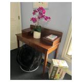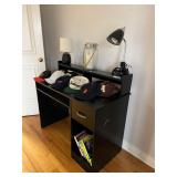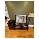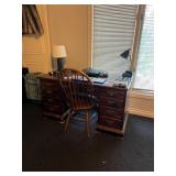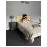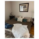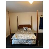 Full size 4, post bed, Ethan Allen desk, PS3 player, and games, luggage, women’s clothes, men’s clothes, dresser, nightstand, full size bed, Lane desk, king size bed frame, and box spring, pottery barn rug, entertainment armoire, Crosley record player, vintage dresser